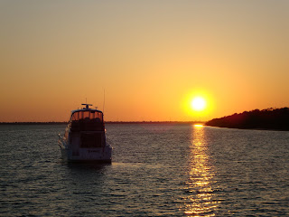 We left Legacy on Tuesday and travelled the 21.9 miles to Ft. Myers Beach where we stopped for fuel at Ballard Oil fuel dock. A wooden pier sticking out into the water with the cheapest fuel around. Like $2.79 a gallon cheap compared to $3.14 plus everywhere else. Normally I'm suspect of the cheapest places but this guy fuels the shrimp boats. As we pulled up a large yacht was just pulling out. He took on 3000 gallons of diesel! Ouch! By the time we got done fueling it was closing in on cocktail time so we decided to pick up a mooring ball and spend the night.